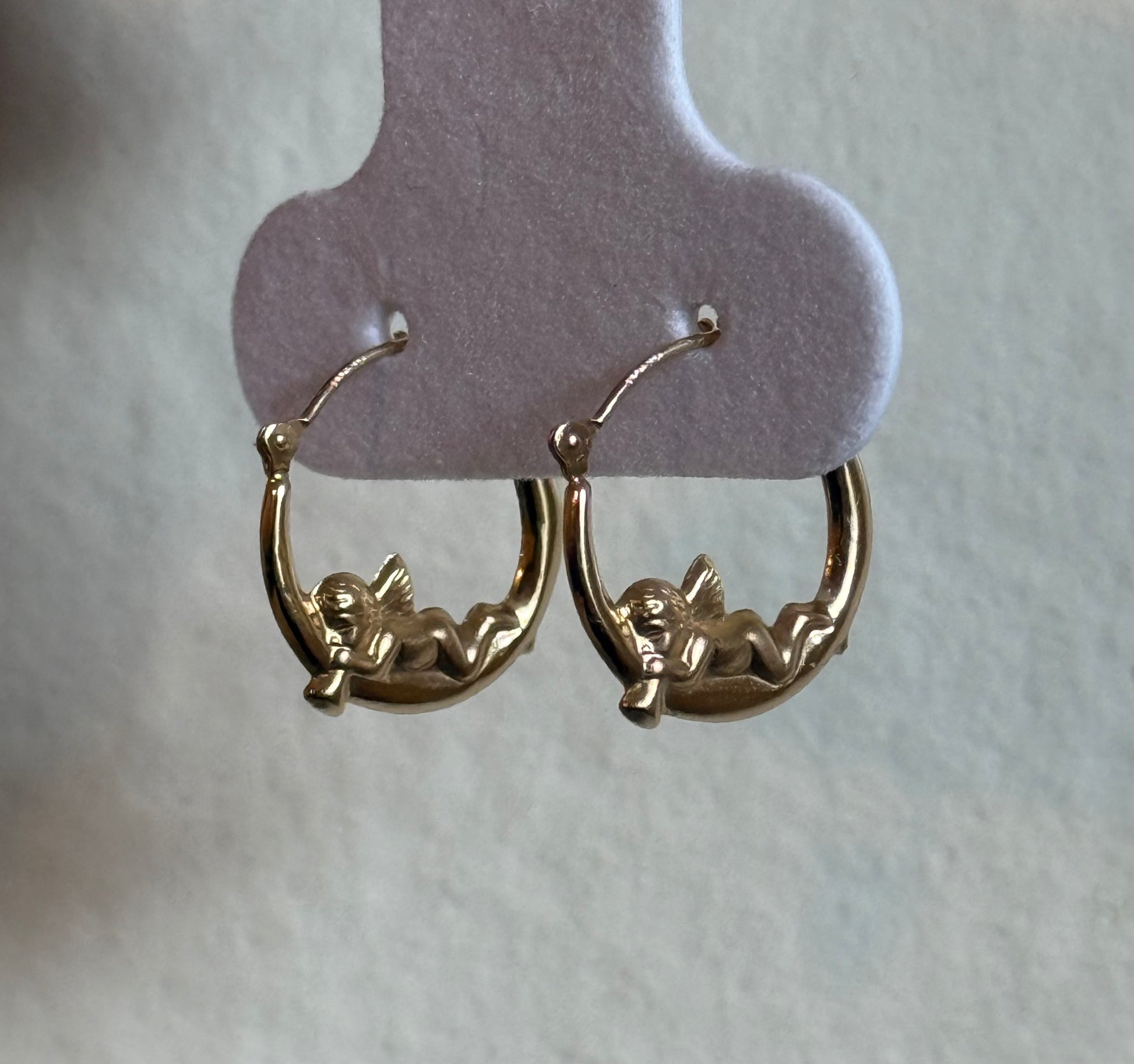 - 14k Double Sided Hollow Cherub Trumpet Hoops - $200 (small signs of wear)