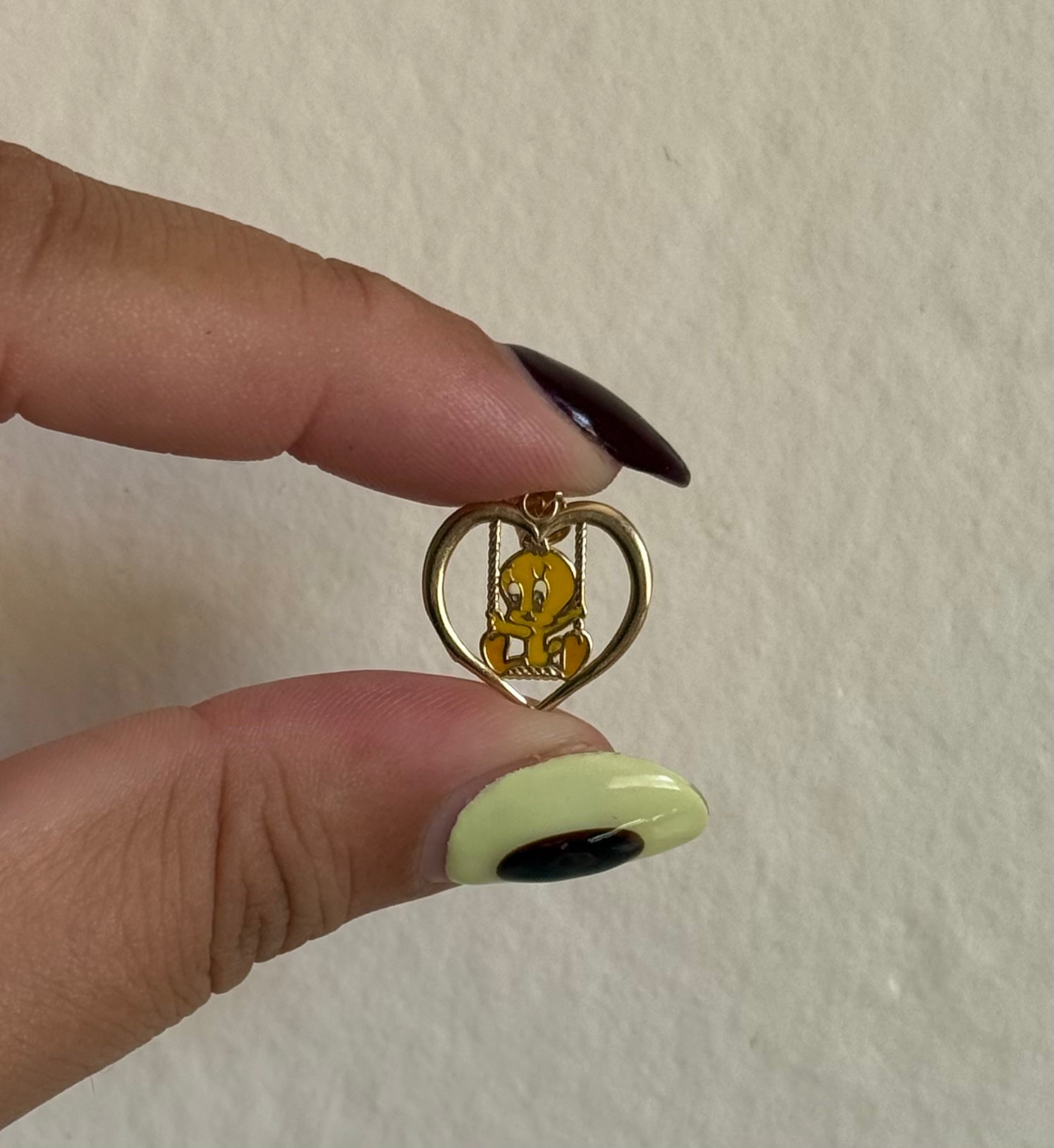 Vintage 14k + Enamel Tweety Heart Pendant available to add to your collection!